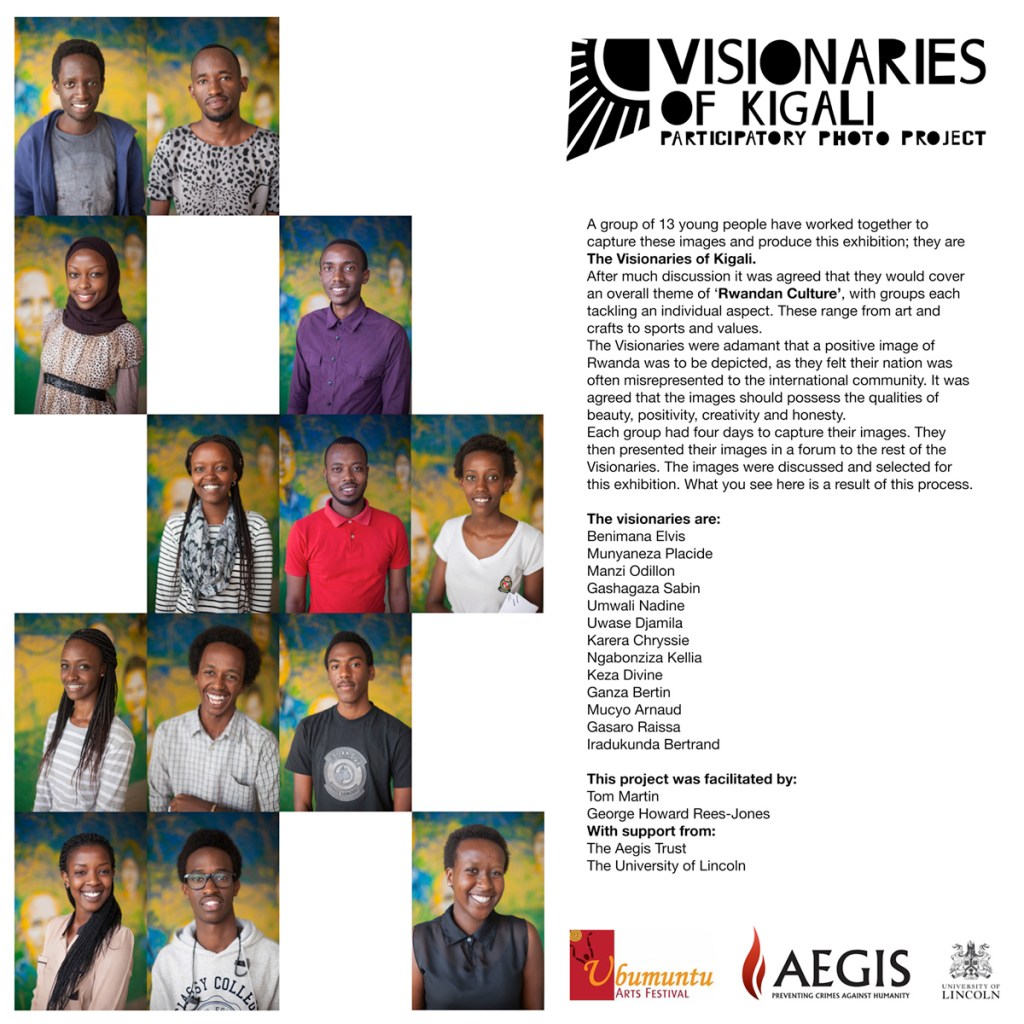 The visionaries of Kigali project was a community peace-building participatory photography project working with 12 young people at the Kigali Genocide Memorial, seeking to use photography as a catalyst for communication, expression, discussion and social change. Through a process of co-production the young people set the agenda for the project, working towards and exhibition at the annual ‘Ubumuntu’ arts festival, a celebration of arts and culture that marks the end of the 100 days of commemoration of the 1994 genocide against the Tutsi.
